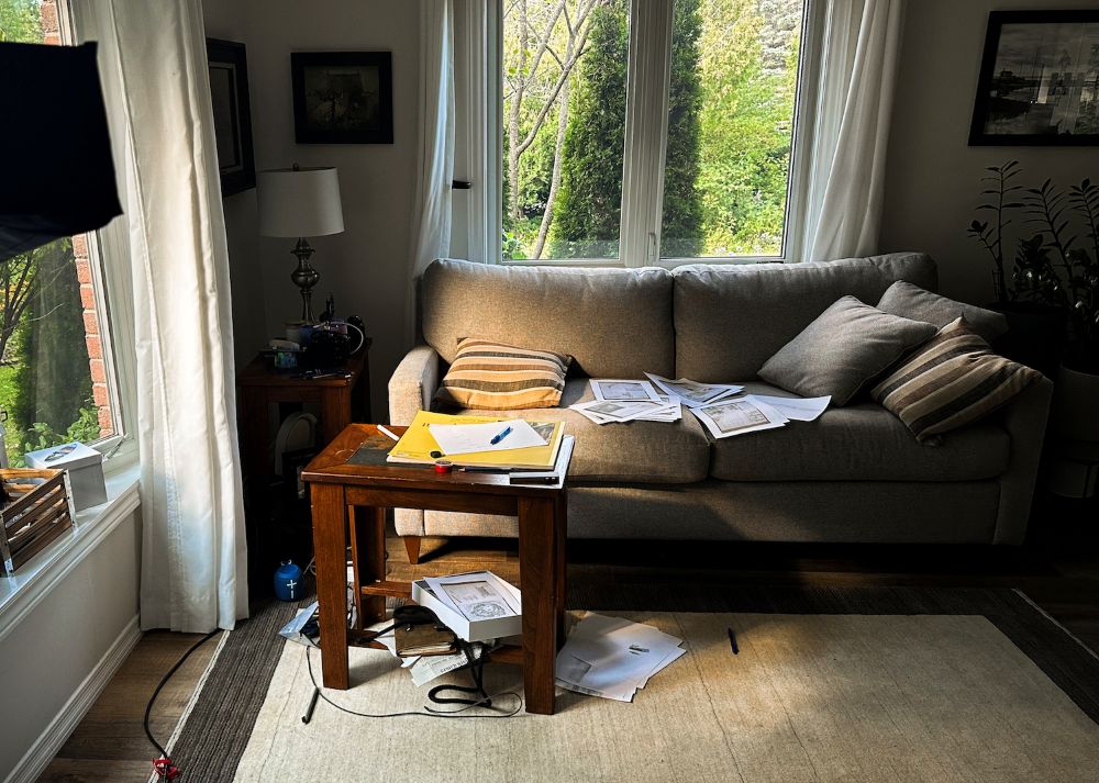 Work time means settling into his director-writer mode — emails, client calls, a dozen little creative fires that somehow all get handled at once — plus fielding the very important midday texts from me. In a world full of distraction, he has this rare ability to drop in and attack the task in front of him like nothing else exists. It’s part of his human wiring: a burst of deep focus followed immediately by a burst of movement.